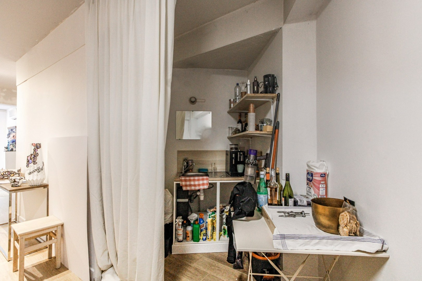 Verhuurbare oppervlakte van +/-52m2, met kelder (+-12m²) rechtstreeks bereikbaar vanuit de winkel..