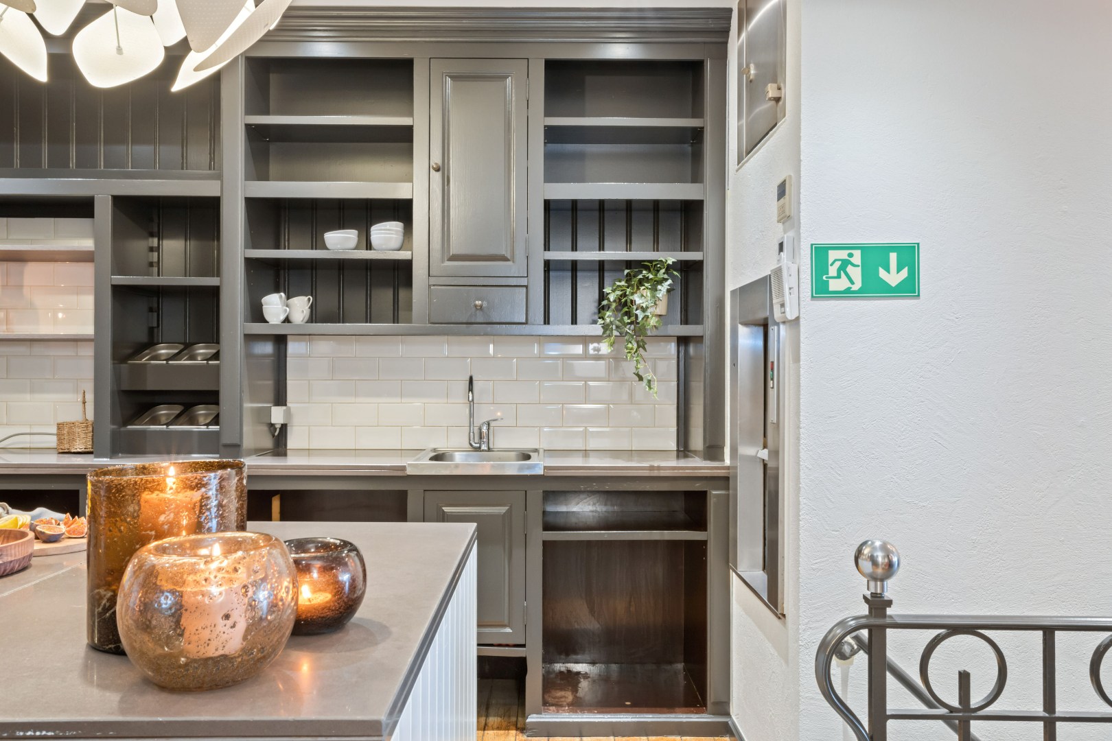 In de kelderverdieping bevindt zich de volledig ingerichte professionele keuken met koelcel en keukenlift, toiletten alsook een bergruimte, die eventueel apart toegankelijk is voor leveranciers.